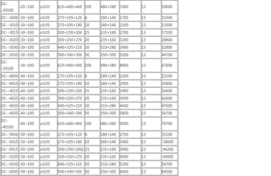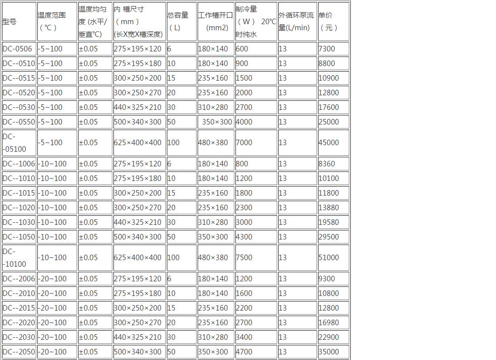 DC低溫恒溫槽系列型號(hào)與參數(shù)對(duì)照表