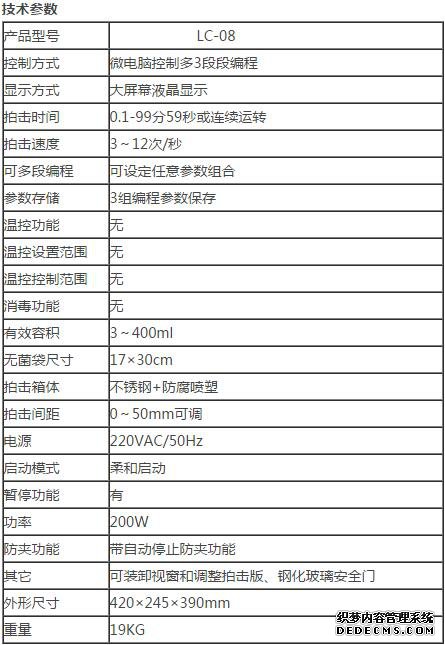 該裝置采用不銹鋼系統,可分離固體樣品表面和被包含在內的微生物樣品,樣品裝在一次性的無菌均質袋中,不與儀器接觸,具有均質柔和、不升溫、不需滅菌處理、不需洗刷器皿的特點,滿足要求。